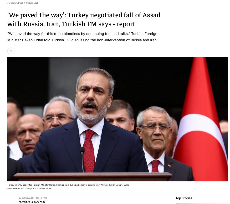 Turkish Foreign Minister Hakan Fidan told Turkish TV, discussing the